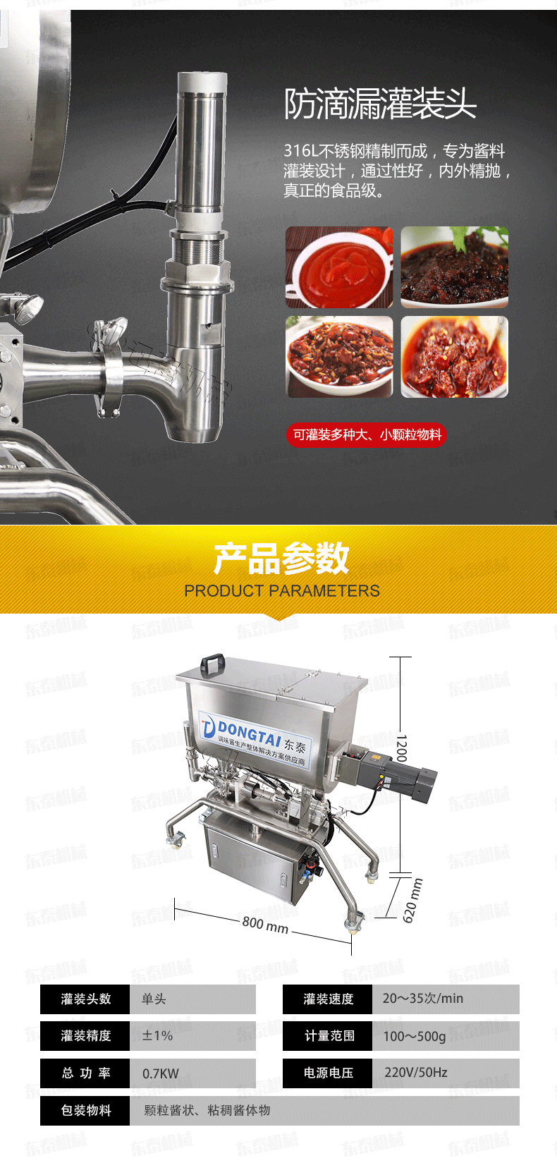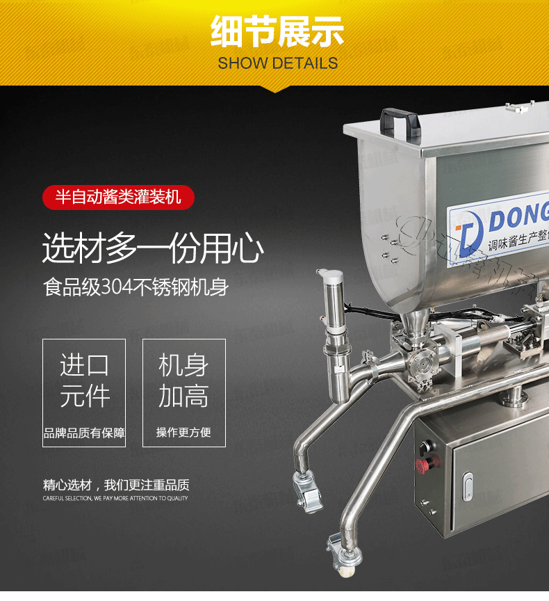 2、 醬料灌裝機設(shè)備全不銹鋼制作,衛(wèi)生、安全;