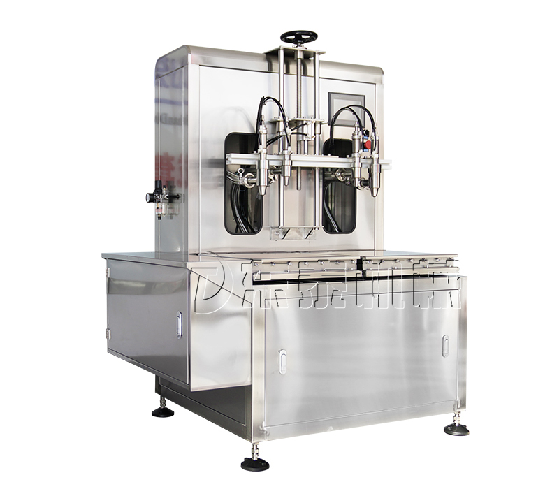 灌裝頭防滴漏設計,杜絕滴漏:整體工藝制作,灌裝頭內(nèi)塞與灌裝頭緊密貼合,內(nèi)塞底孔搭配真空回吸裝置,抑制物料滴漏污染生產(chǎn)環(huán)境和避免對液體物料的浪費。